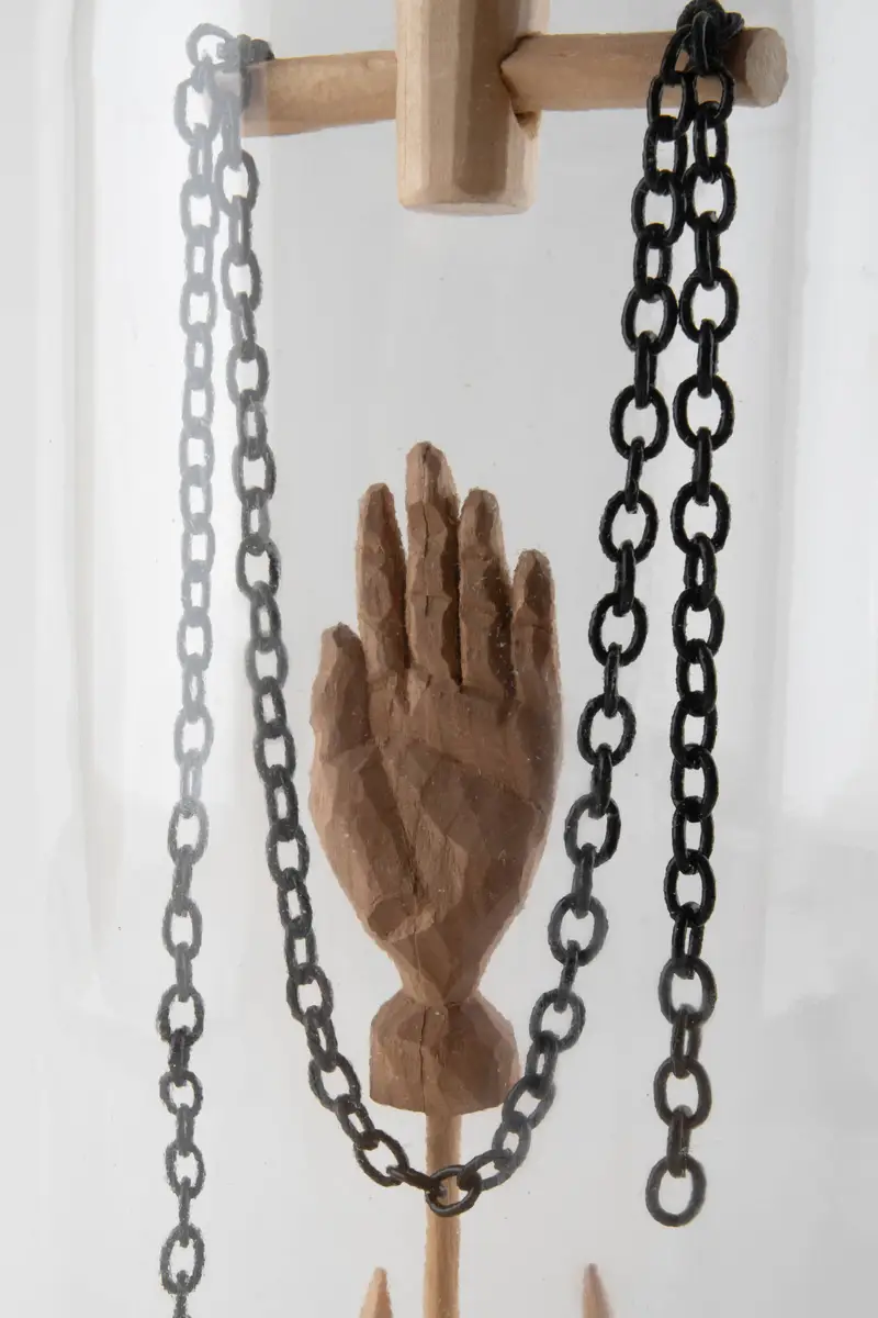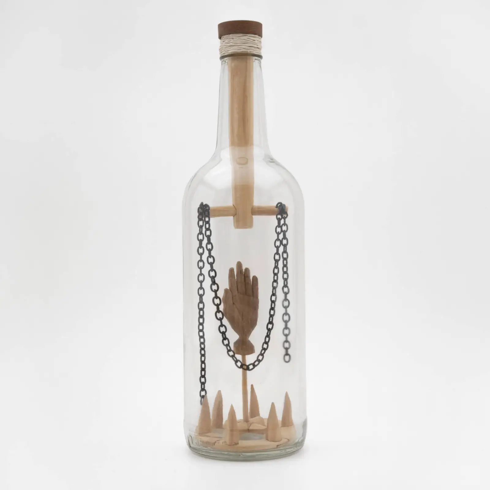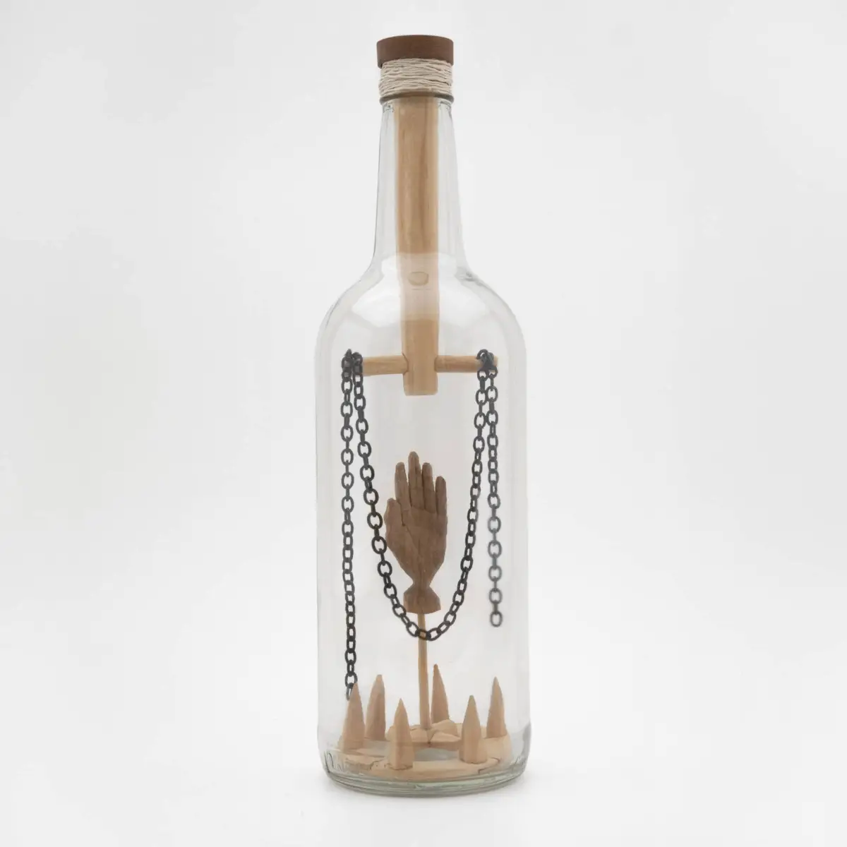 Found bottles, wood, mixed media Assembled with strange tools and string Available at Center for Craft